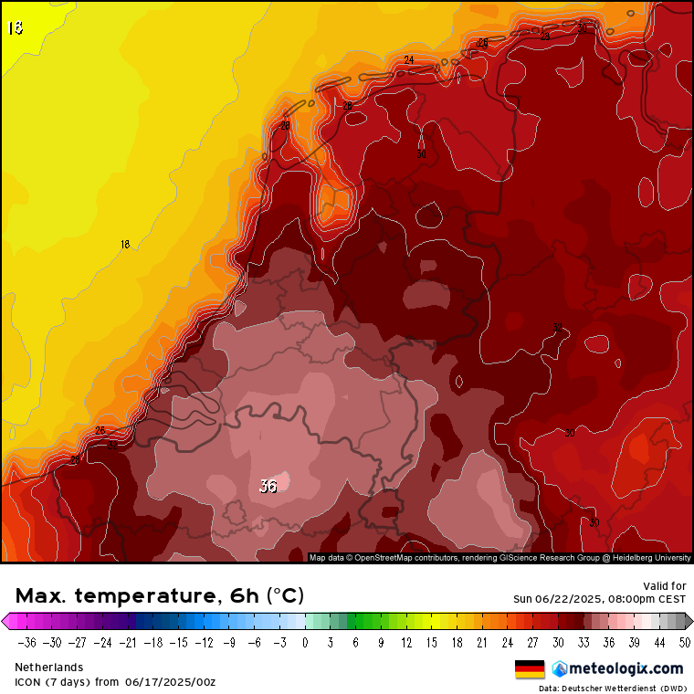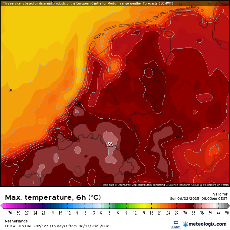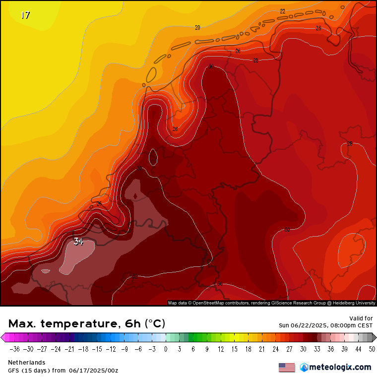 Dagrecord voor zondag op Rotterdam Airport (sinds 1956) staat op 29,6 graden. GFS komt met 33 graden, ECMWF met 34 graden en ICON bijna 35 graden. Voor deze tijd van het jaar echt wel extreem.