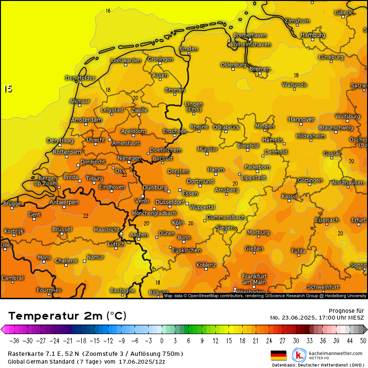 23 juni is hier de nationale feestdag, zeg maar koningsdag. Van mij hoeft het dan geen 32°C te zijn, maar regenbuien zijn dan weer het andere uiterste. De meeste modellen geven pas afkoeling vanaf de 24e, dus we gaan het zien.