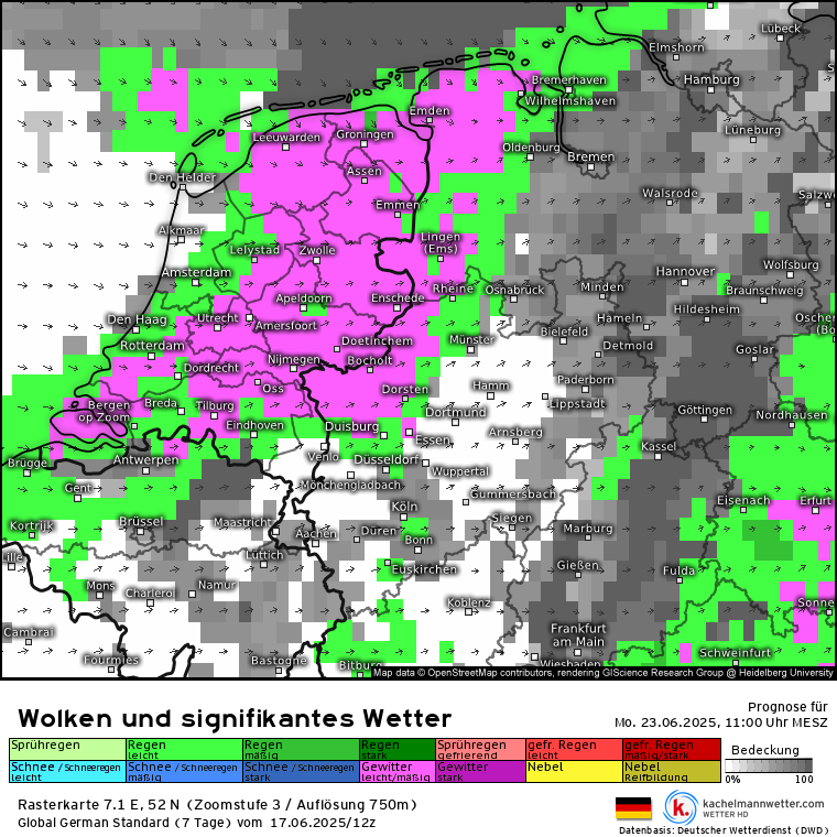 Voor wie de warmte bij voorbaat al te veel dreigt te worden: ICON 12Z komt nu zelfs al op zondagavond al met afkoeling en op de meeste plaatsen neerslag, weliswaar zonder spectaculaire dingen. Edit: toch wel onweer in een flink deel van Nederland op maandag de 23e (derde afbeelding). Ik stel me voor dat deze oper voor wat betreft de temperatuur onderin het ensemble ligt op zondag en maandag, maar misschien helpt het kijken hiernaar tegen oververhitting bij sommigen.