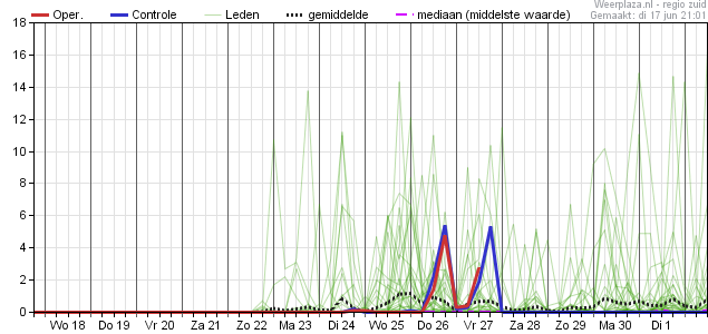 ... onder de streep weer een érg warme pluim. Aankomende weekeinde zelfs een poging om de 35-gradengrens te bereiken, en de rest van de termijn maximumwaarden tussen 25 en 30 graden. Lijkt erop dat een overgang naar een koeler weerregime nog niet in de pijplijn zit.