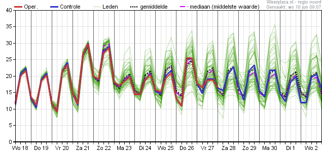 Zaterdag en zondag nog wel steeds kans op tropische waarden in het noorden, dat is al behoorlijk zeldzaam.