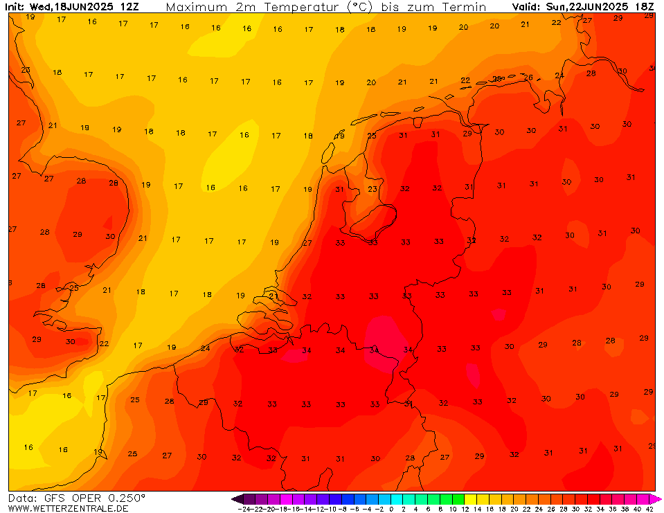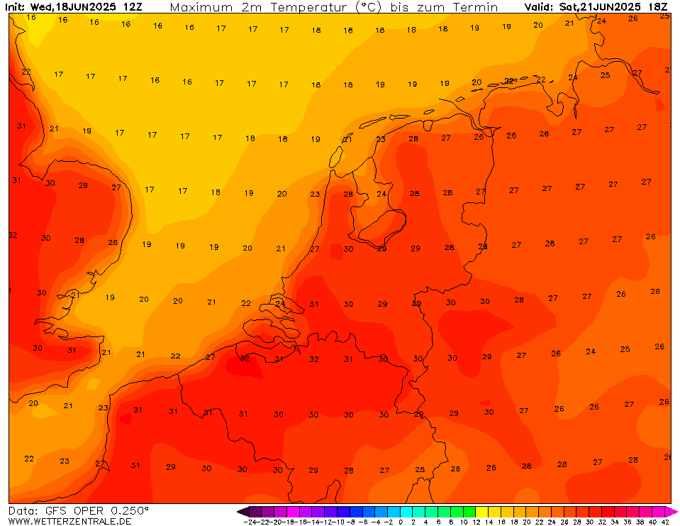 Benelux geregeld op grens oceaanlucht en zuidelijke warmte/hitte ...