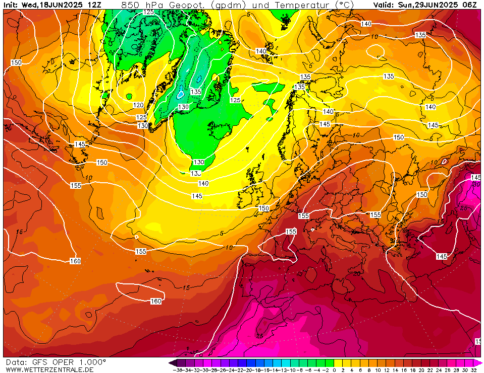 Het zou heel goed kunnen uitdraaien op meerdere dagen met grote temperatuurverschillen, waarbij in het Waddengebied een verfrissende zeewind waait terwijl het zuidoosten van Nederland en nagenoeg geheel België in de zomerwarmte zitten met maximumwaarden om en nabij de 30 graden. Vandaag hebben we ook zo'n situatie.