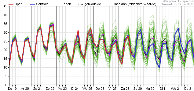 Hmmm ... Aankomende zondag (35C) is toch wel een flink exces