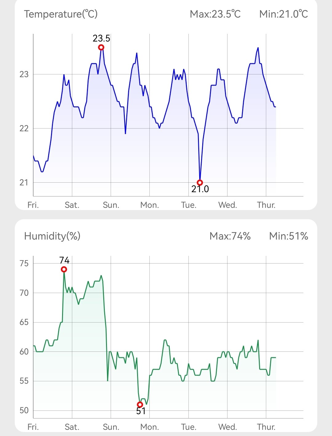 24 graden, slaapkamer 23,5. Eerste verdiep.