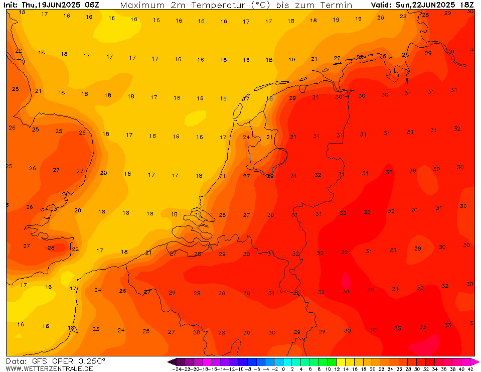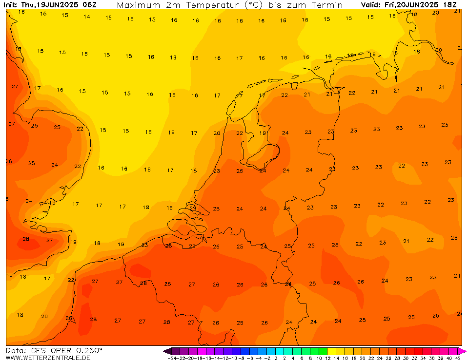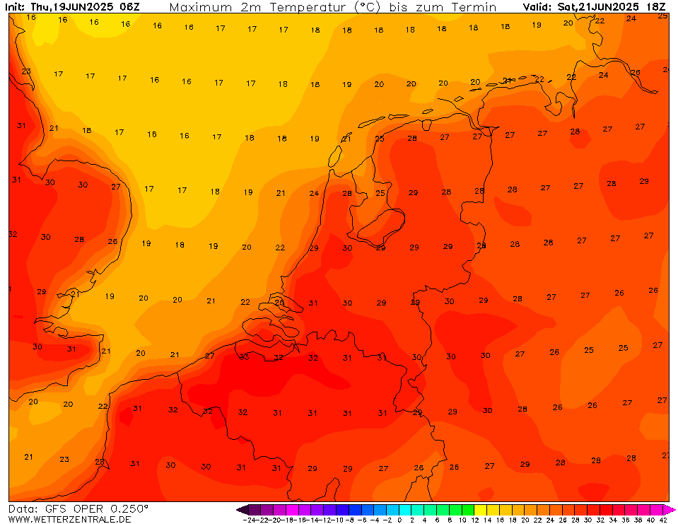 Oper GFS1906 - zaterdag 28-6 fors warm maar ook (stevige) buien?