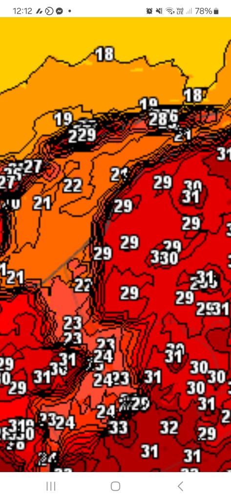 Zaterdaf 18u grofweg 28 a 31°C vermoedelijk.