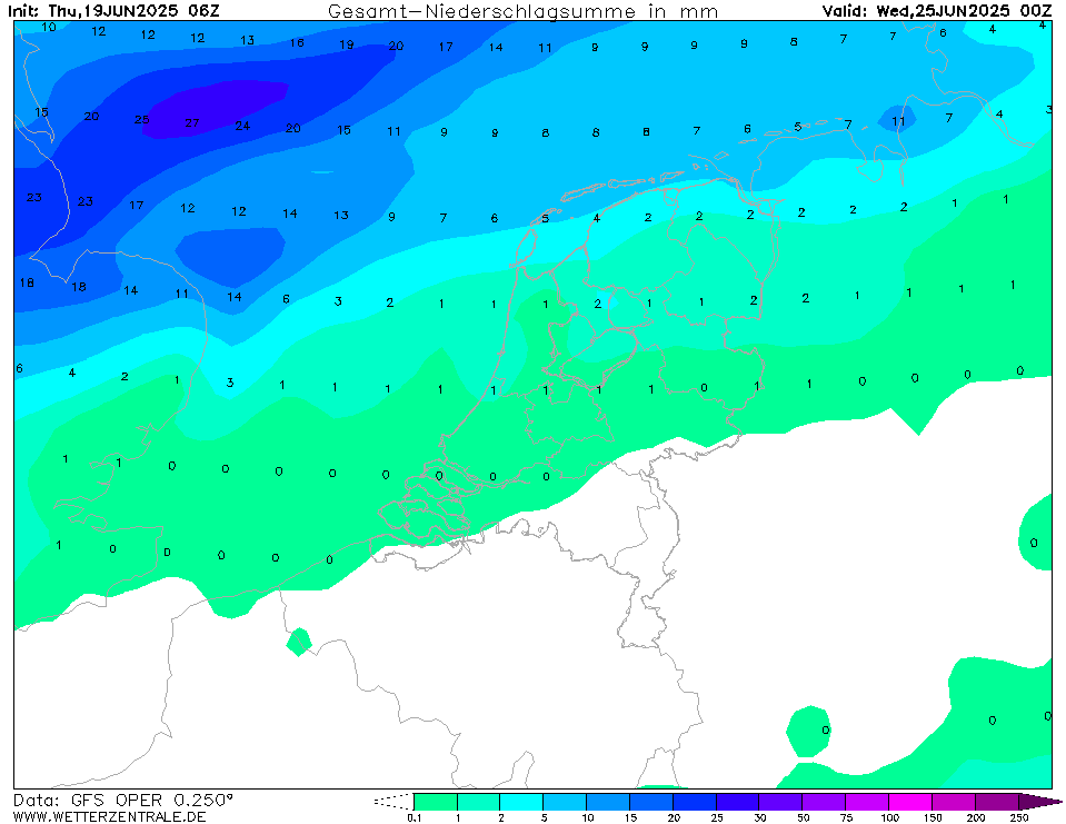 Oper GFS1906 - Tx'en ma en di | dinsdag neerslag over noord NL