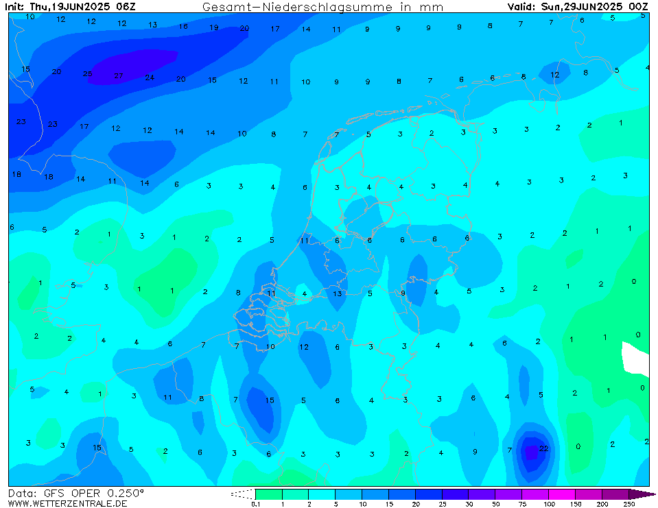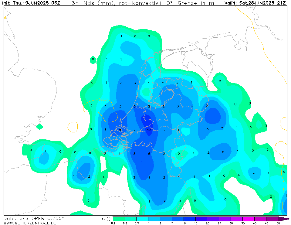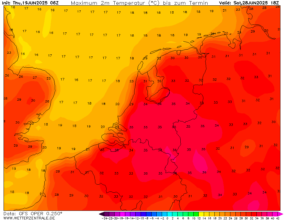 Oper GFS1906 - zaterdag 28-6 fors warm maar ook (stevige) buien?