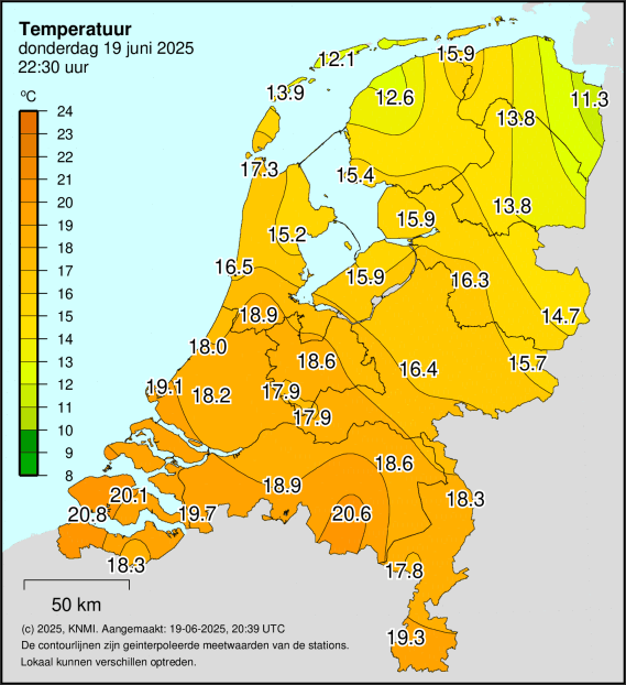 In het uiterste NO van de Benelux slechts een graad of 11, gewoon kil te noemen voor een avond in de 2e helft van juni.