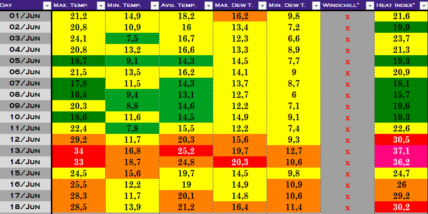 Deze maand heeft van 1 t/m 18 juni een gemiddelde van 17,8 graden hier.