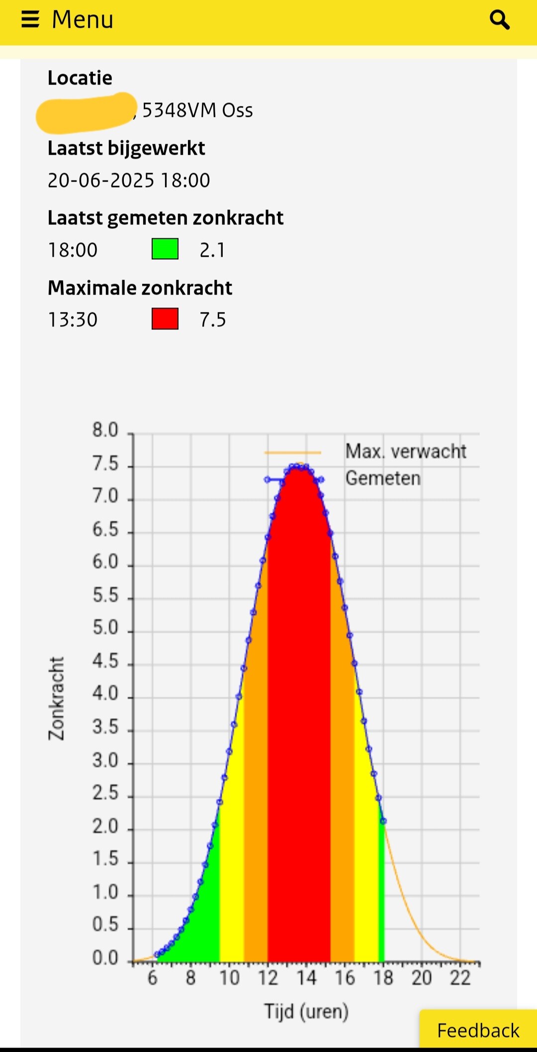 Tenminste het lijkt mij eerder een berekening dan een meting. Hier staat namelijk geen zonkrachtmeetapparatuur.