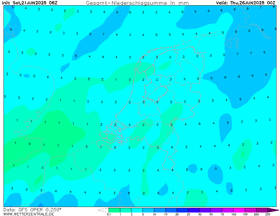 Oper GFS2106 - Tx'en donderdag t/m zondag (29-6) + totale neerslagsom