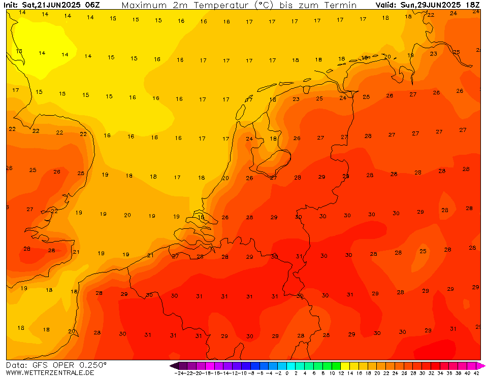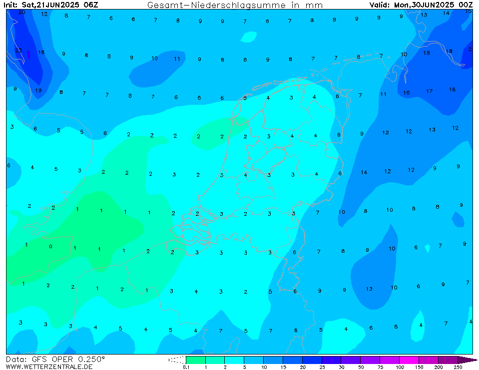 Oper GFS2106 - Tx'en donderdag t/m zondag (29-6) + totale neerslagsom