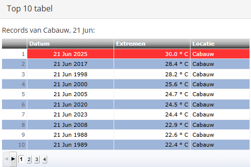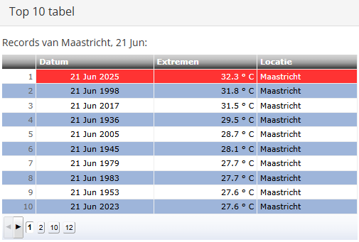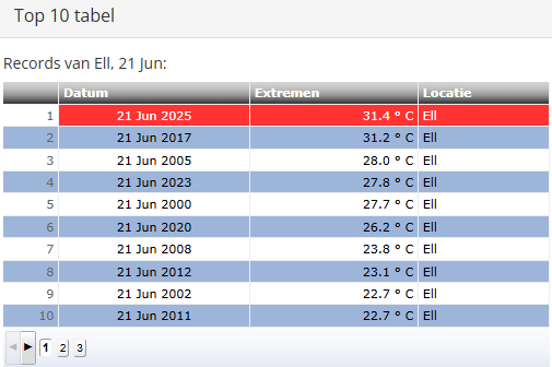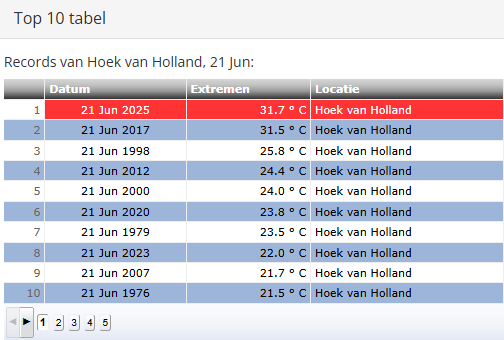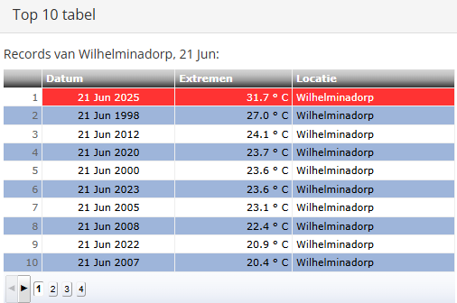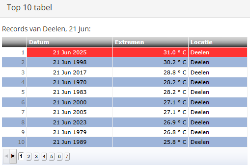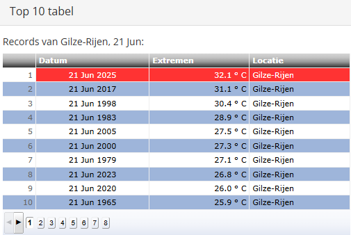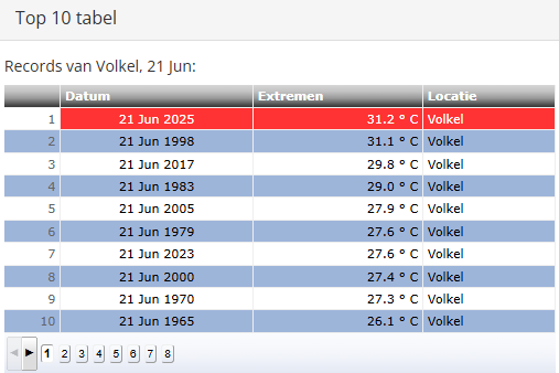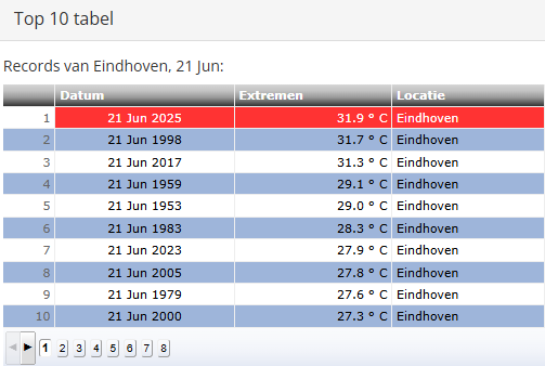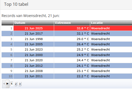 In Westdorpe blijft bijvoorbeeld de 33,0C van 21 juni 2017 wel staan. Op andere stations is ook 21 juni 1998 vaak het warmst, zoals voor Arcen bijvoorbeeld het geval is.