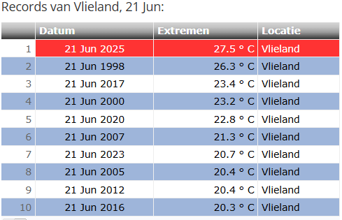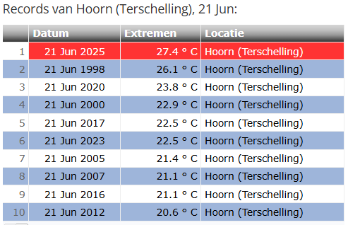 Vandaag ook dagrecords Tx op Terschelling en Vlieland. HvH ook.