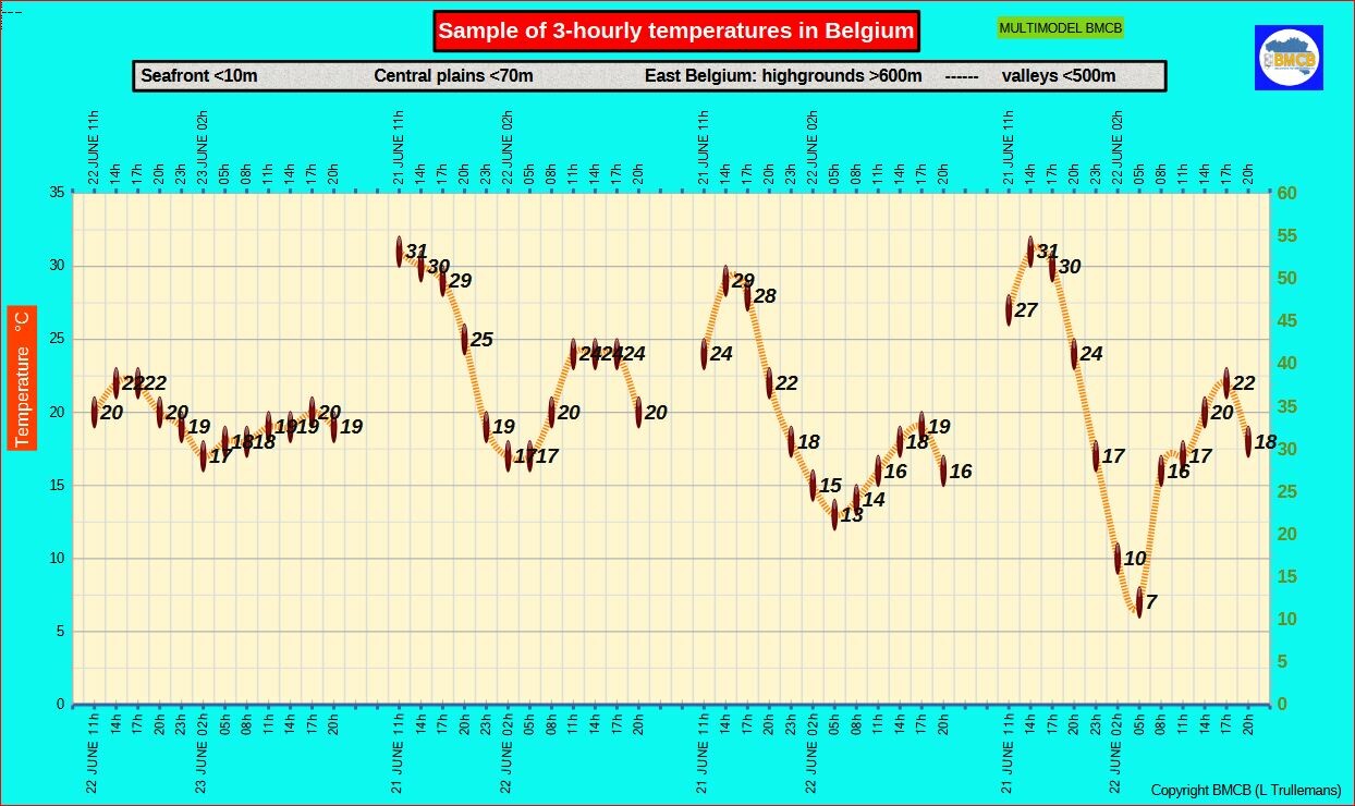 Tussen 16 en 7°C in de valleien ten zuiden van de Samber- en Maaslijn