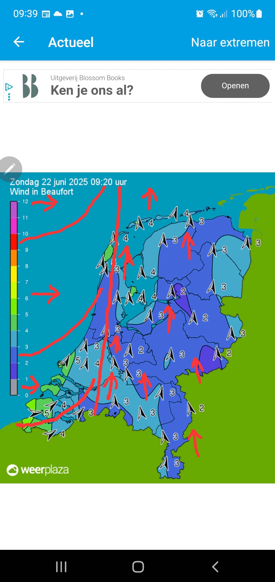 Quote selectieInmiddels is in Zeeland de Wind al west 5 bft en is de vore al voorbij Rotterdam, boven Breda, Amsterdam, Vlieland