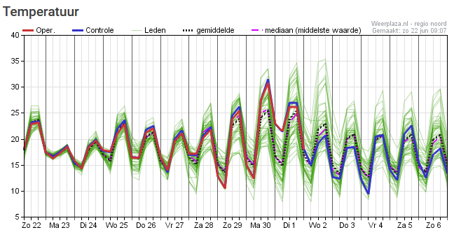 Vaak 20-25 graden. Volgende week eventueel wat ontsporing.