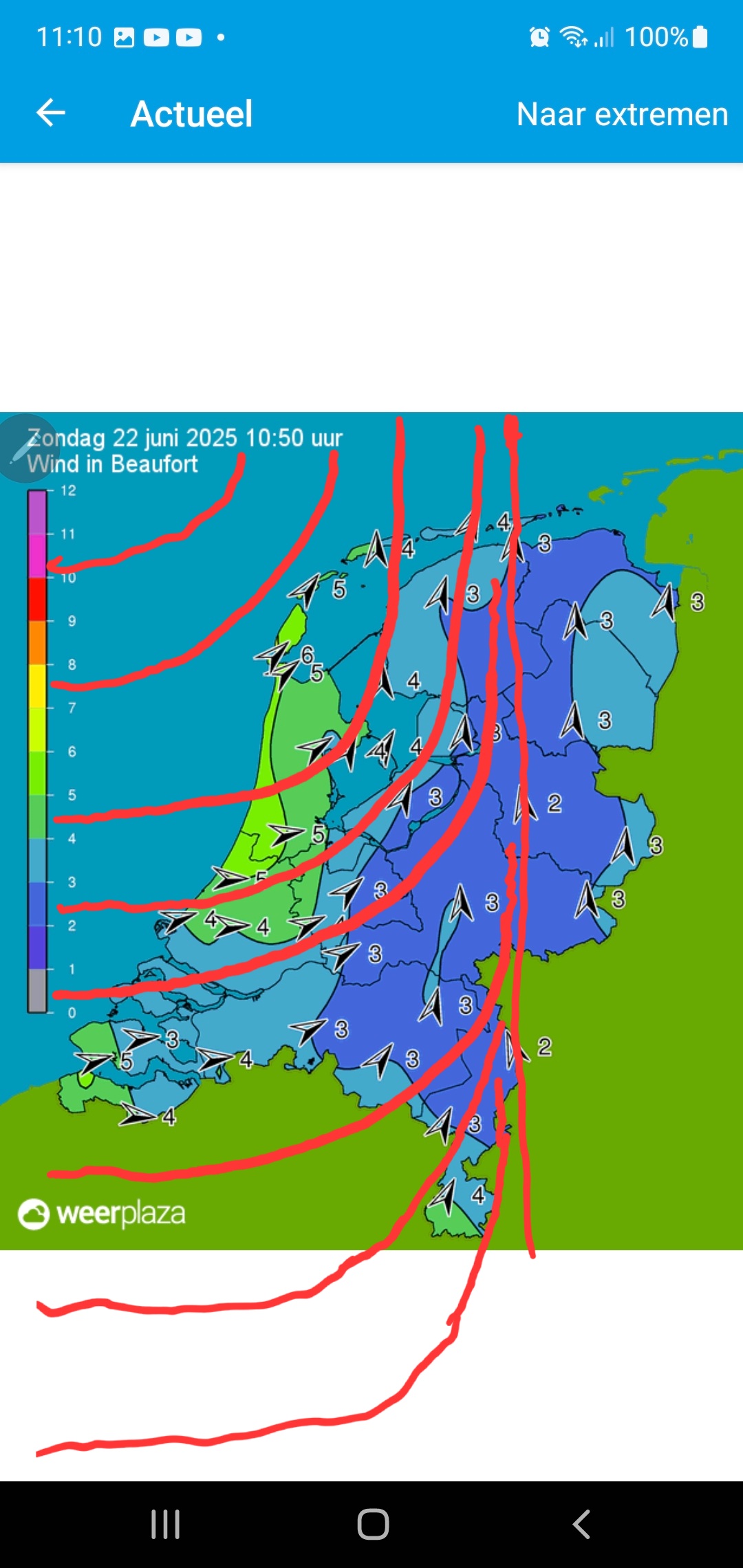 Ja de vore is inmiddels Limburg voorbij en ligt boven Duitsland en lijkt ook een beetje te kantelen, bijvoorbeeld bij Laurensoog is die niet verder opgeschoven.