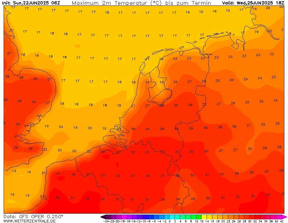 180 uur: temperatuurverschillen tussen Nederland en Belgiƫ