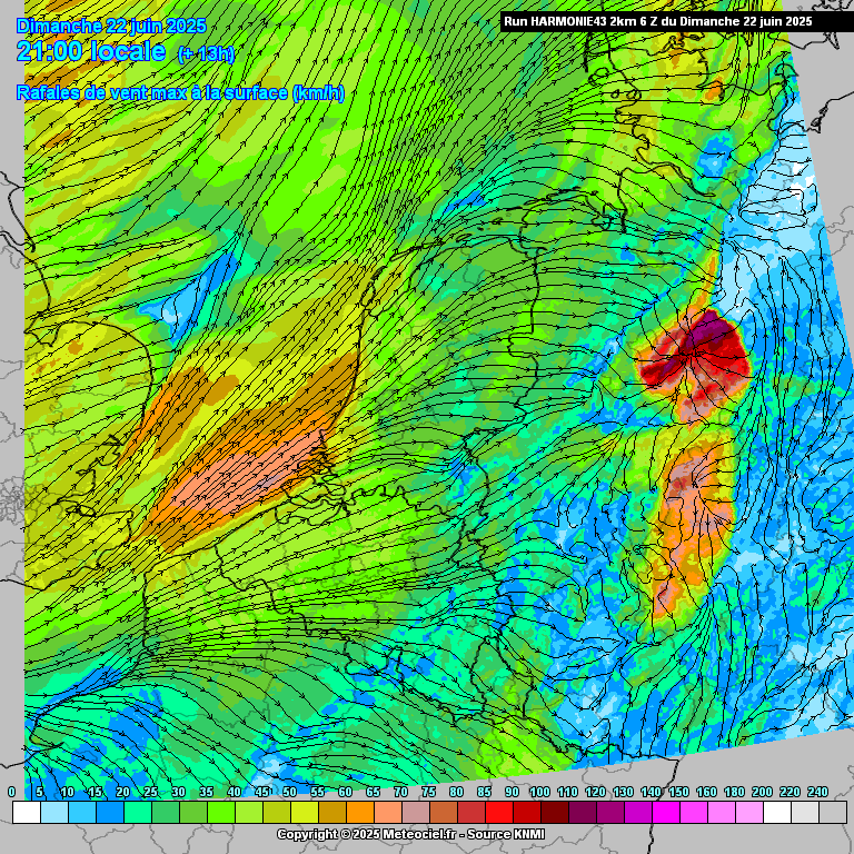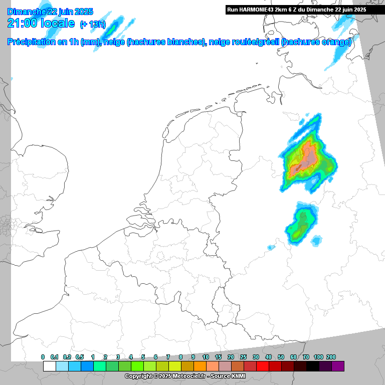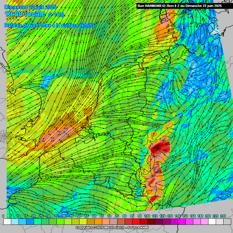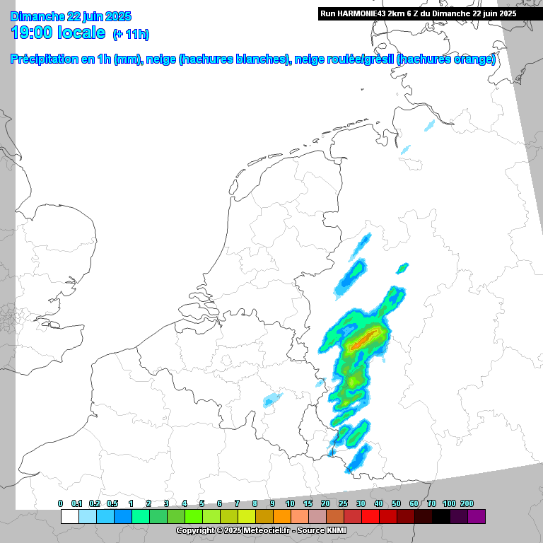 In mijn regio moet ik er weinig of niks van verwachten, maar eenmaal in Duitsland activeert de zaak weer en kan er veel verder naar het noordoosten tot ruim 20 mm vallen volgens deze berekening. De windstoten zouden dan van meer belang zijn, die gaan op het laatst (22 uur) tot ruim boven de 100 km/u. Dat zal dan wel weer wat overdreven zijn.