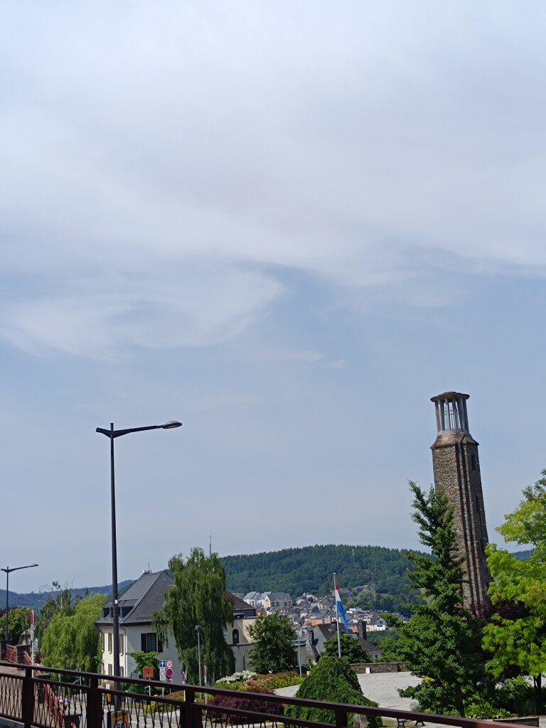 Ik ben even buiten geweest om te kijken wat voor bewolking er aankomt. Voor even is het wel te doen. ICON-D2 berekent een onweersbui tegen 14 uur, maar het gaat alleen om een pluk cirrusbewolking. Wel met een rare krul erin.