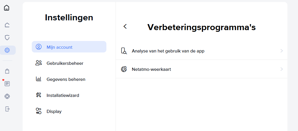 Dashboard --> instellingen --> Verbeteringsprogramma's --> Netatmo weerkaart --> inschakelen