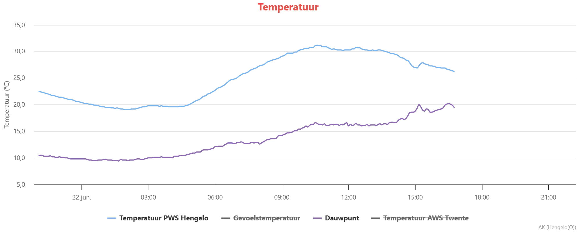 Tact 26 °C, smerig weer momenteel, met hoge Td