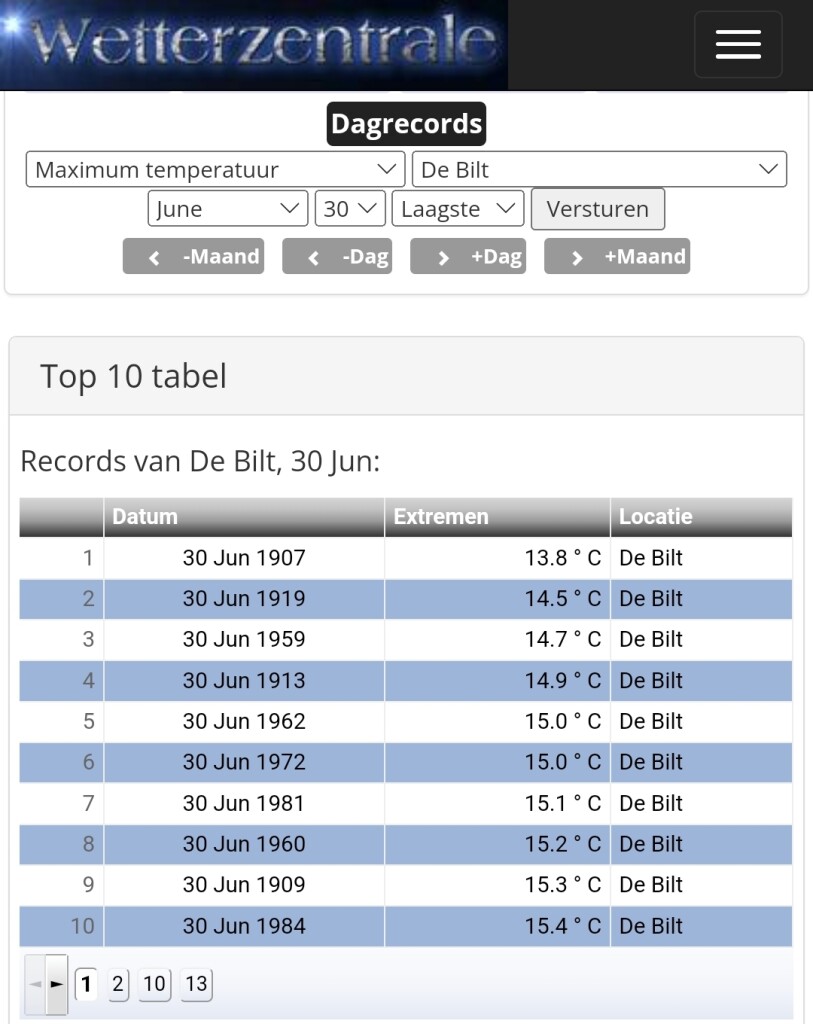 Zelfs op 31 december en 1 januari kan het tegenwoordig warmer worden dan op 30 juni 1907. Bij nader inzien zelfs warmer dan de hele top 10 koelste 30 juni dagen.