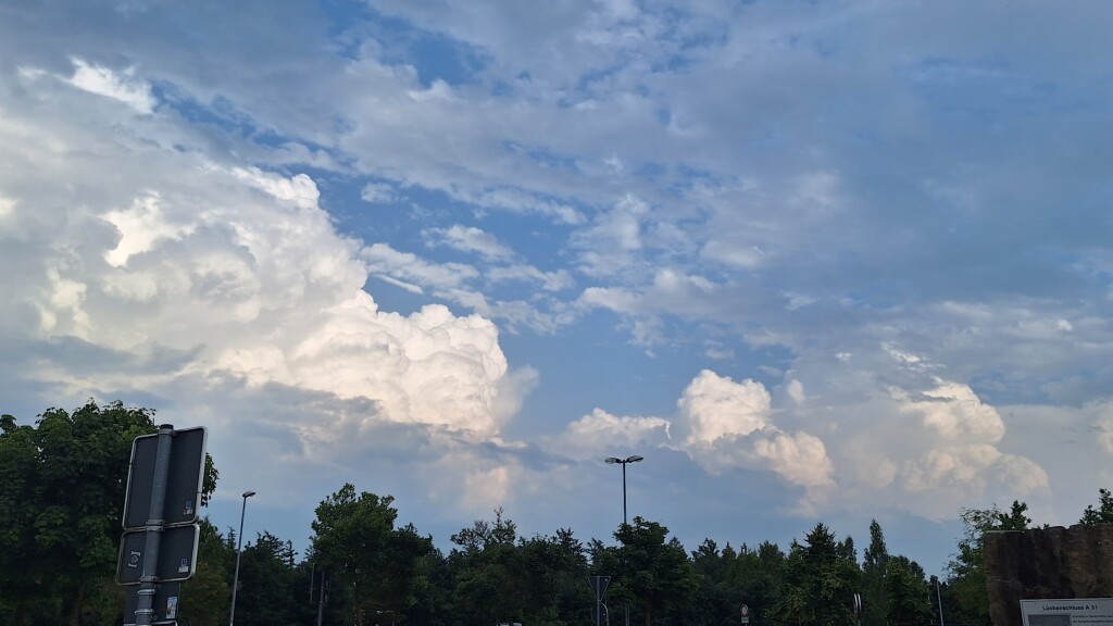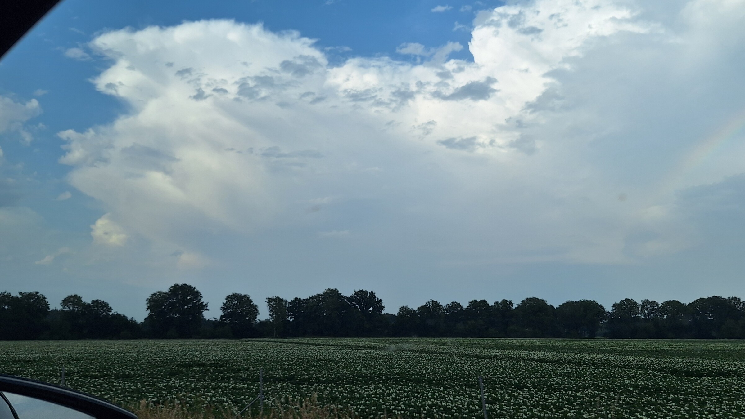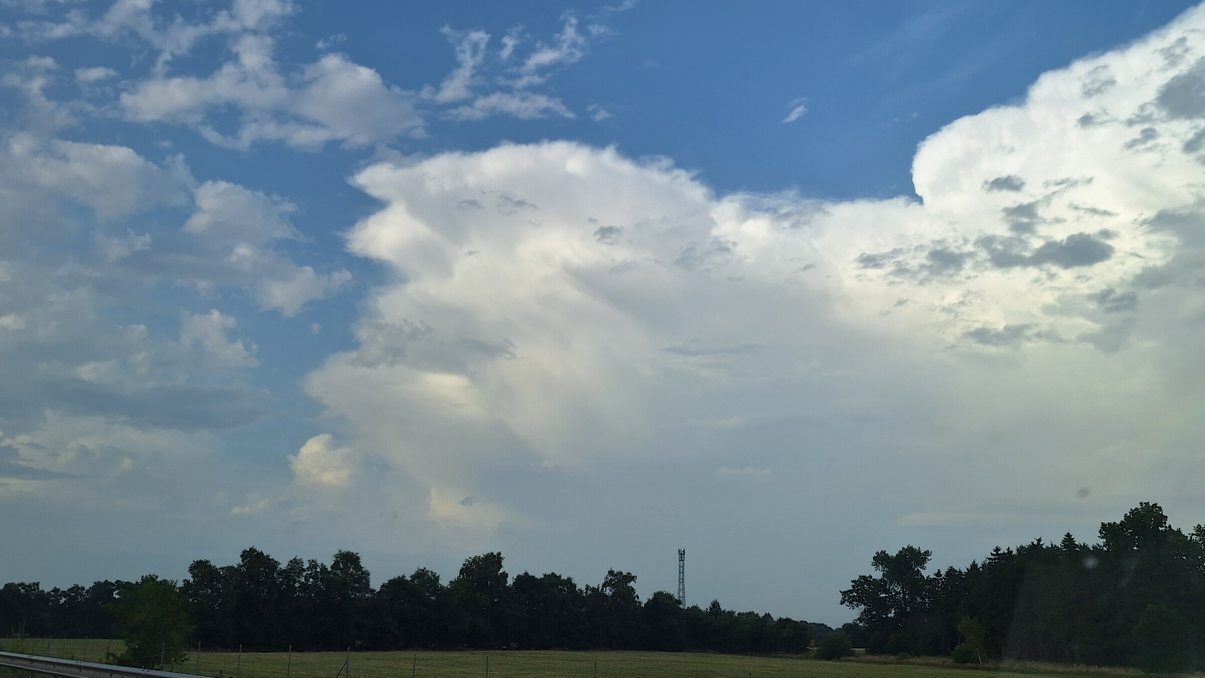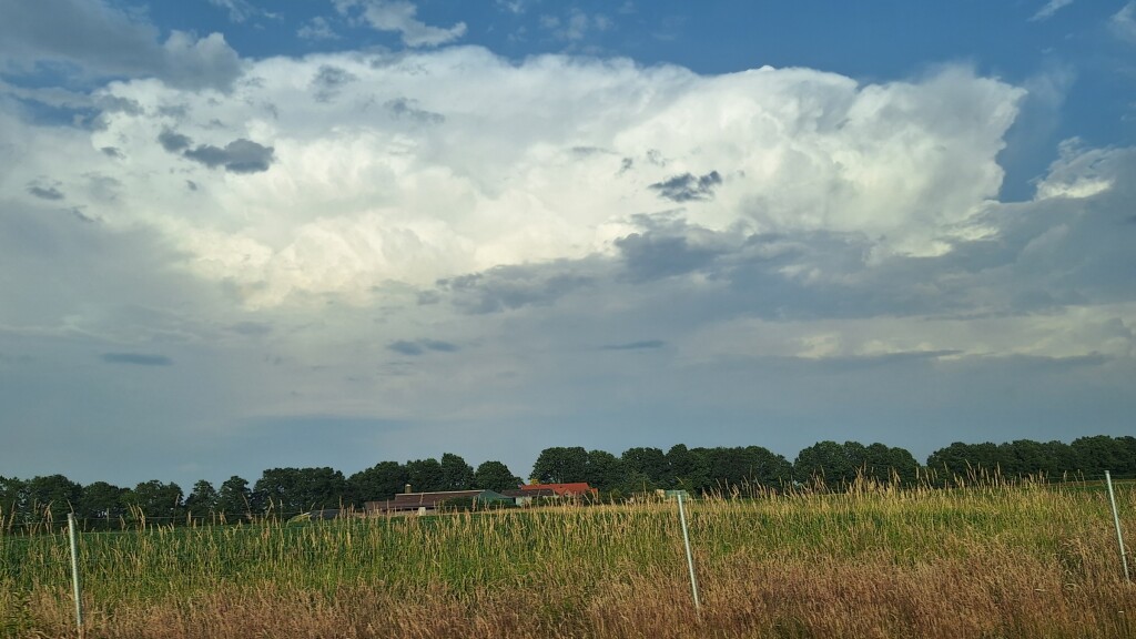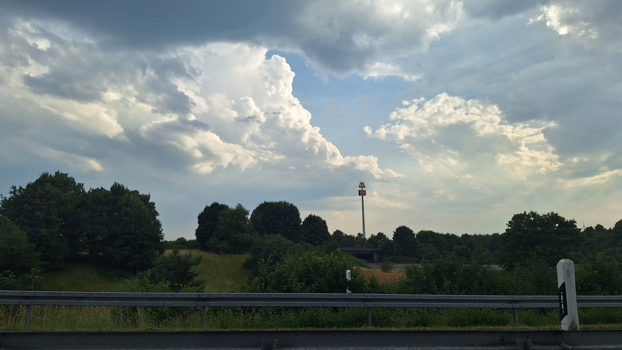 Ik was zostraks onderweg vanuit Nordrhein Westfalen, omgeving Recklinghausen , onderweg naar huis en werd op de A31 getrakteerd op fantastische luchten in de vorm van enorme CB's. Eigenlijk reed ik net een beetje achter de buien aan. Ik meende het 1x te zien weerlichten. Bij Kreuz Schüttorf regende het even flink. Toen ik nog wat noordelijker kwam , werden de enorme ploffers nog beter zichtbaar.