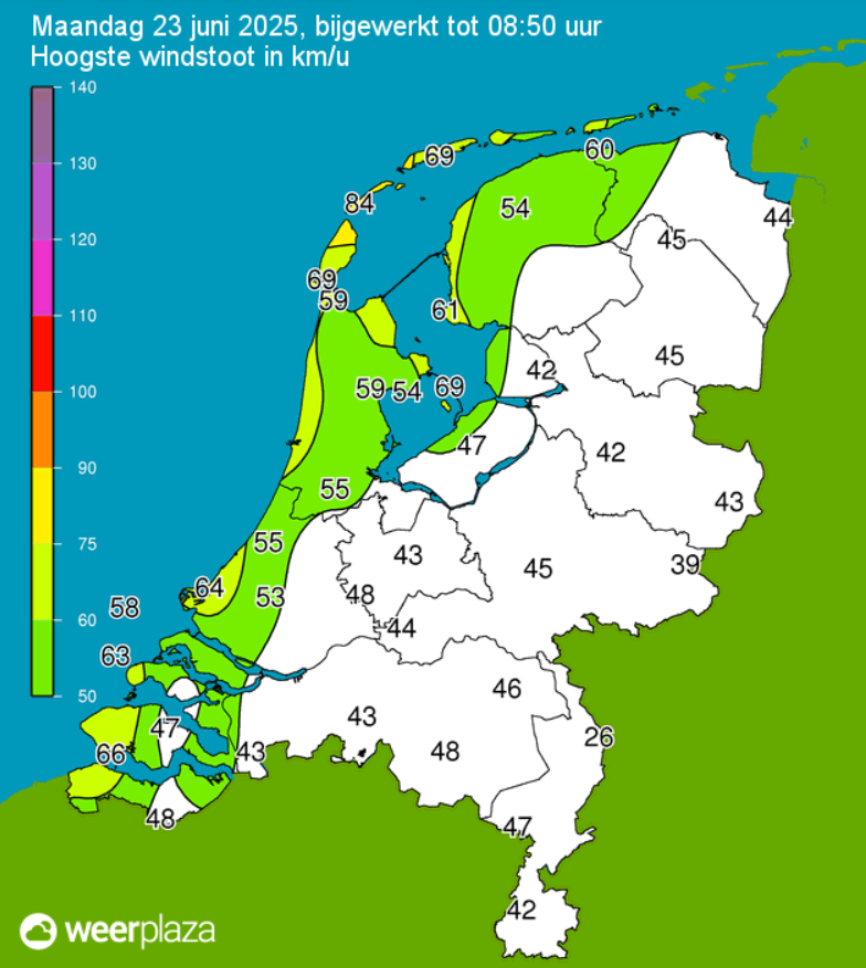 Vlieland 84 km/uur.