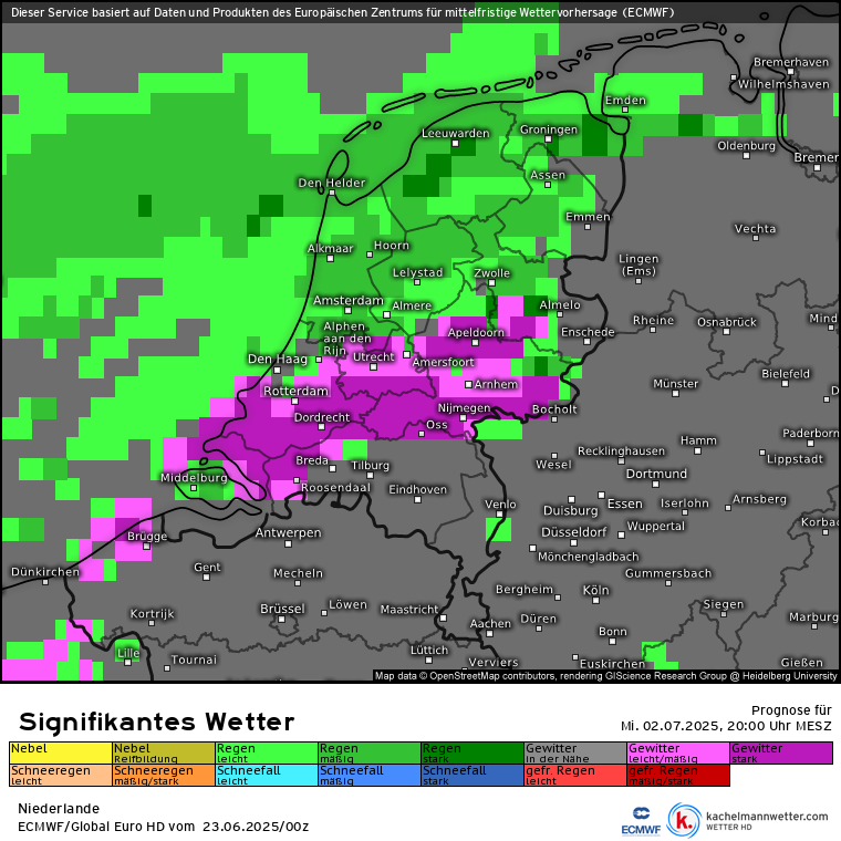 Het is een heel kort warmte-opstootje over het zuuidoosten, met toch ook over Nederland fors onweer in de avond van 2 juli. Op de 3e is dat voorbij.