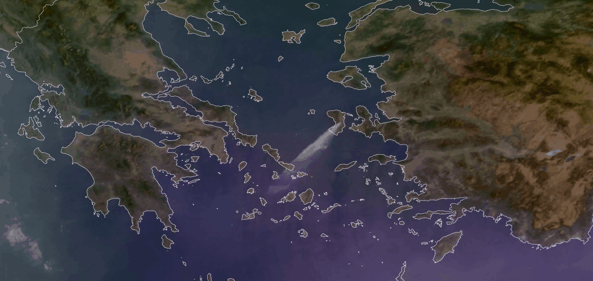 Enorme bosbrand Chios (GR) goed zichtbaar op satellietbeelden