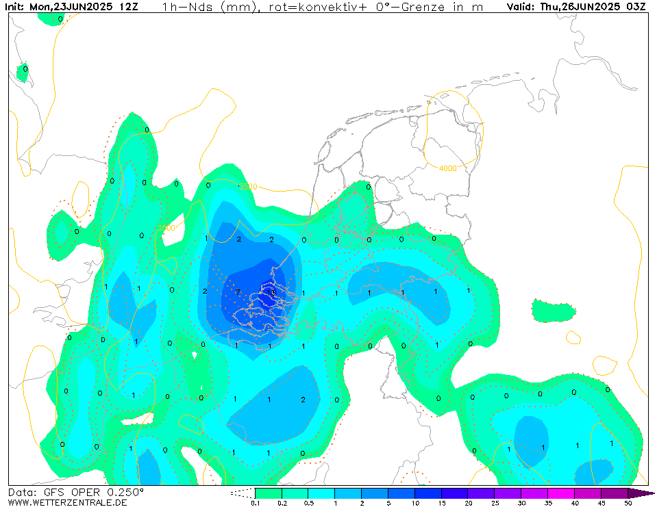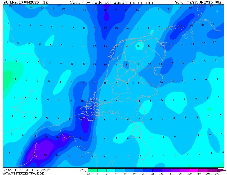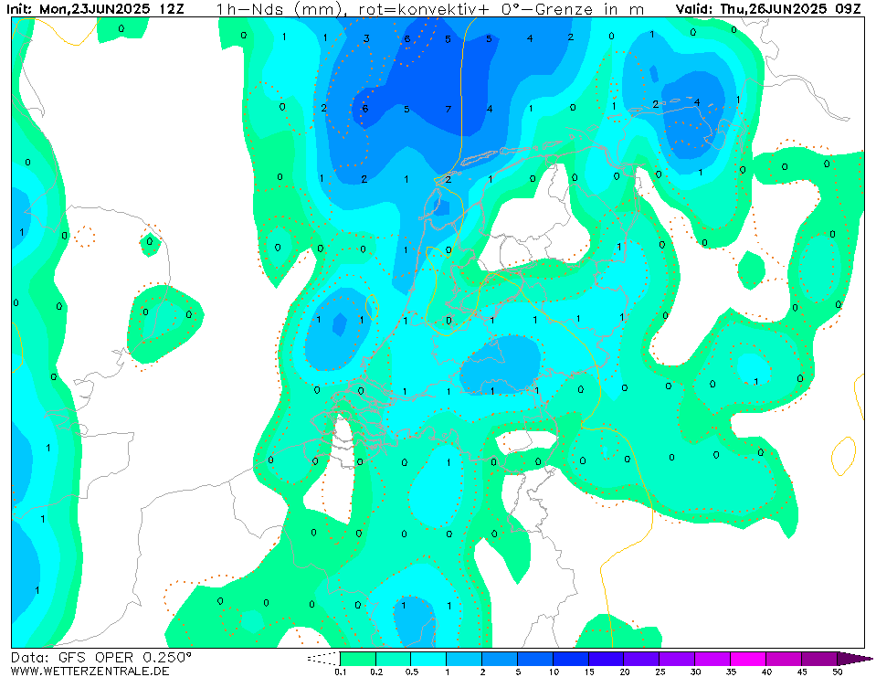 Oper GFS2312 - woensdag laat en donderdag kans op buien