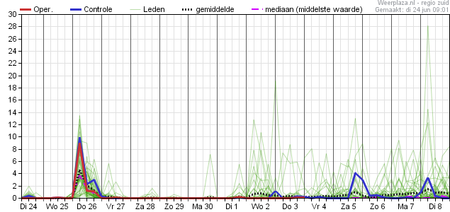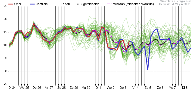 Een pluimgemiddelde van 36 graden voor dinsdag 1 juli