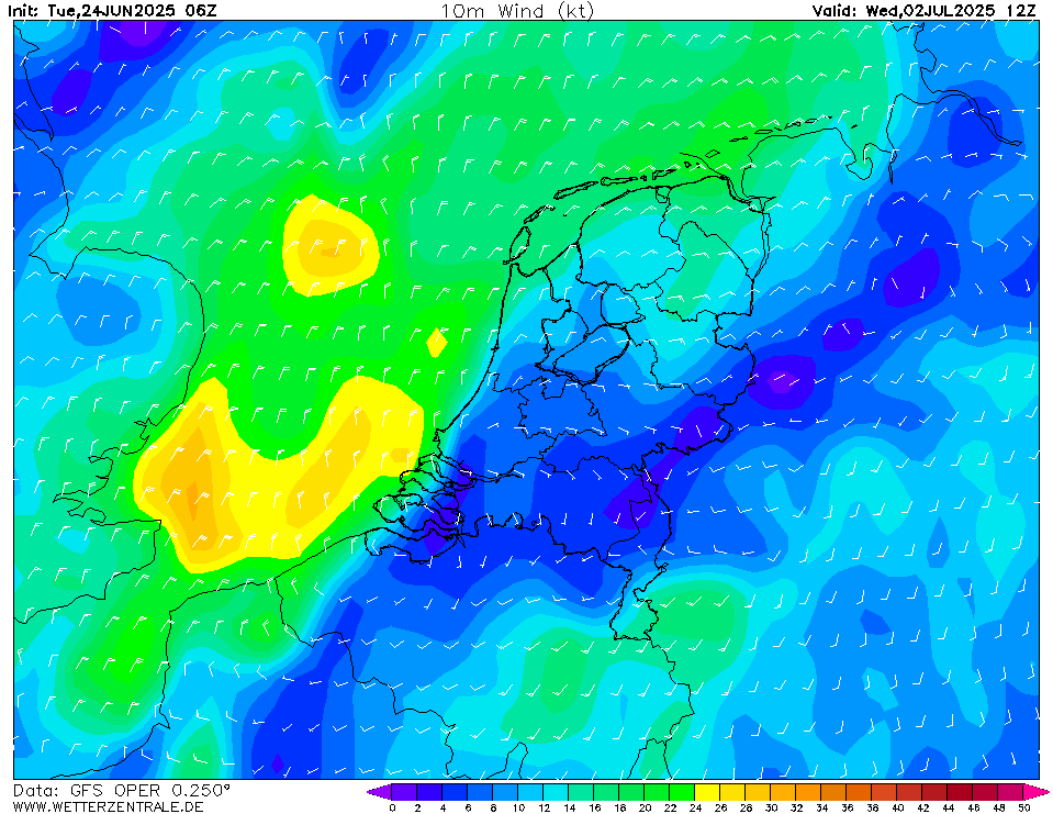 in de praktijkKan ik melden dat het zeer zelden is dat dergelijke verschillen realiteit worden. De hitte reikt met deze aanvoer - die moet wel zuidelijk zijn - gewoon tot over de Noordzee. De wind is hier dan NO in deze kaart, dat verklaart een hoop, dan nog is het zeer uitzonderlijk qua spekkoek.