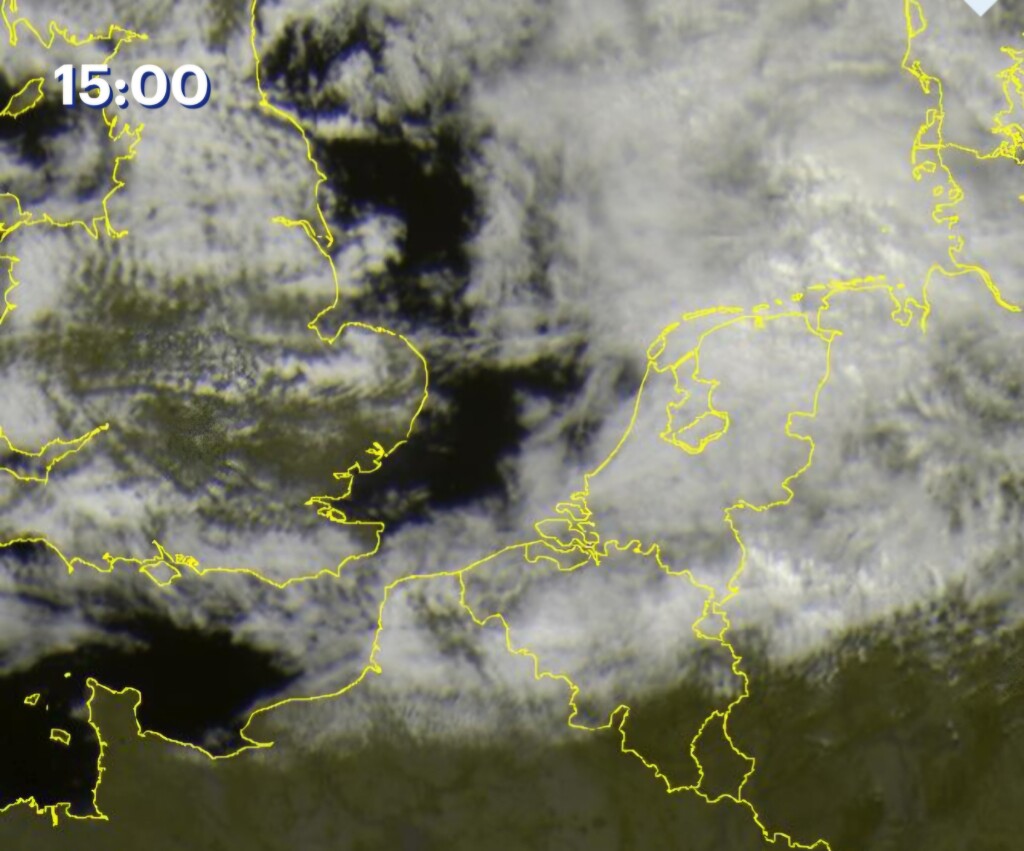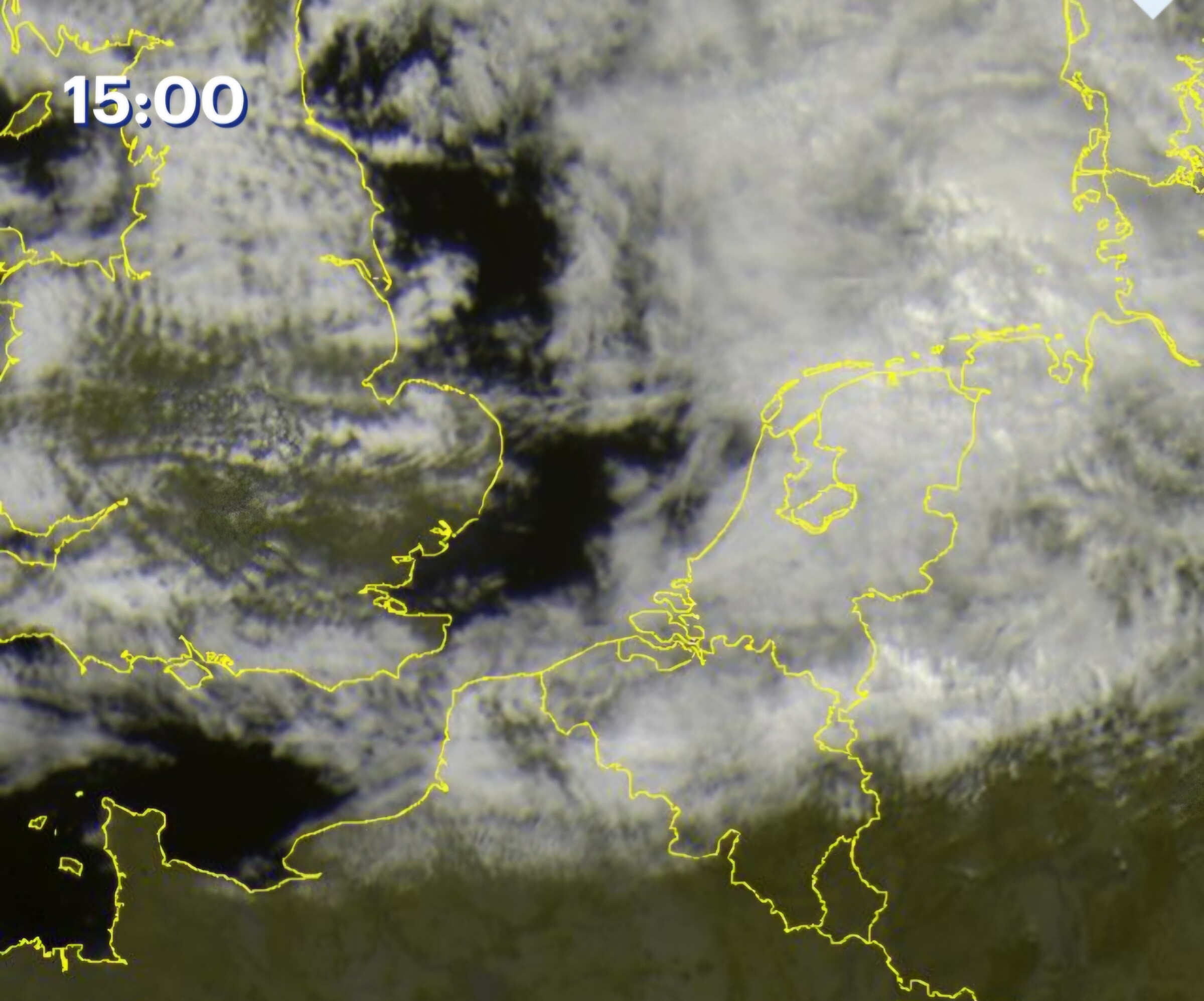 Opklaringen op de satellietbeelden van Buienradar zojuist.