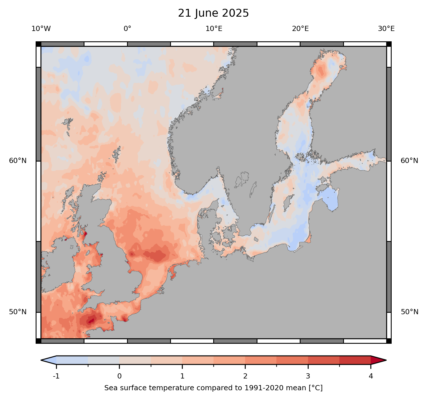 De SST in de aanvoer ligt momenteel alweer 1 tot 3 graden boven het nieuwe langjarig gemiddelde (1991-2020) en 2 tot 4 graden boven de oude normen.
