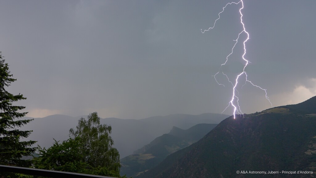 Zo kon je deze middag in Andorra het weer typeren. Vanaf zo half zes bezocht ons een aktief onweer met alleen maar Cloud-To-Ground ontladingen. Éen sloeg achter mij in op zo'n 300 meter. Ik hoorde een sissend geluid op het moment van deze ontlading.