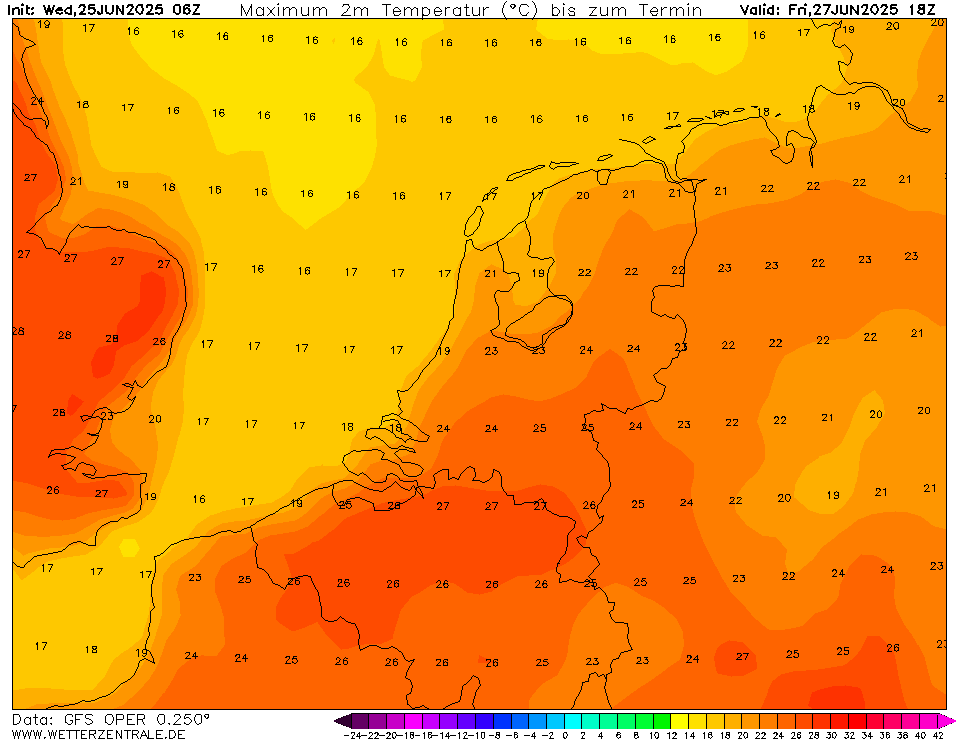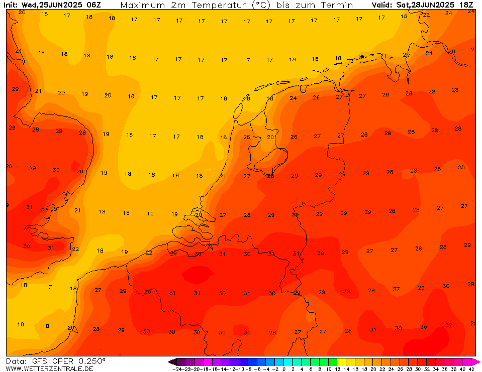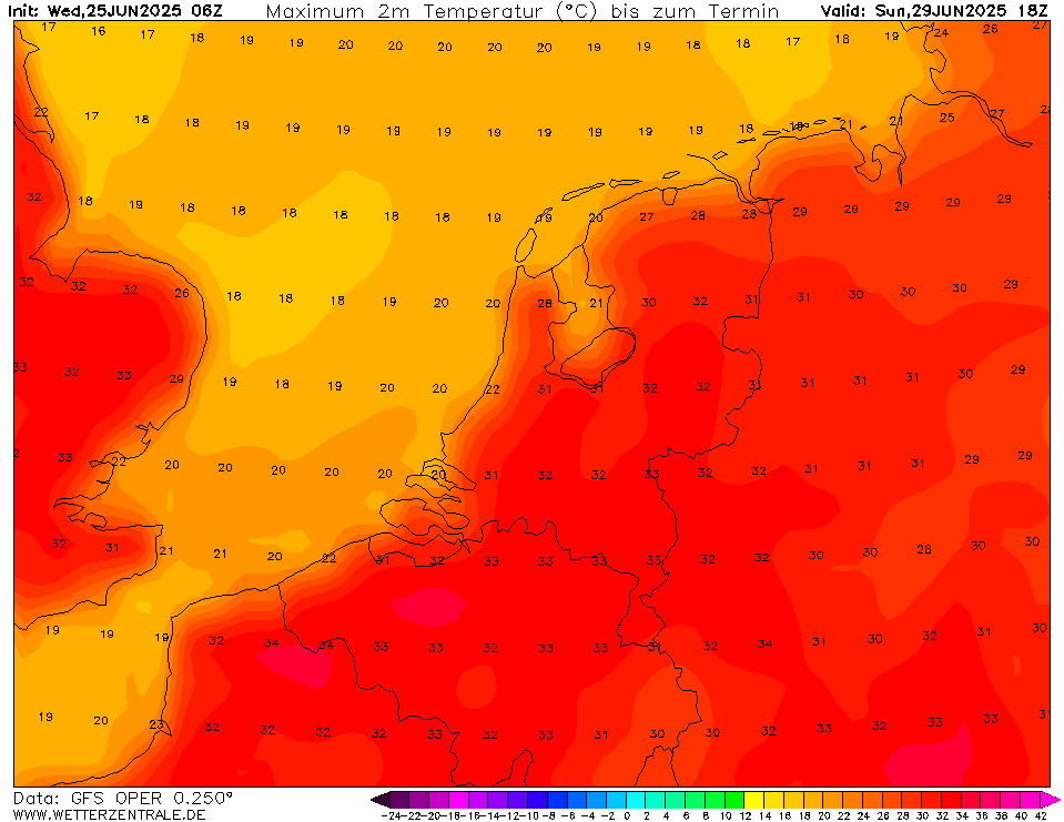 Oper GFS2506 - maandag zeer heet met Tx tot 37°C