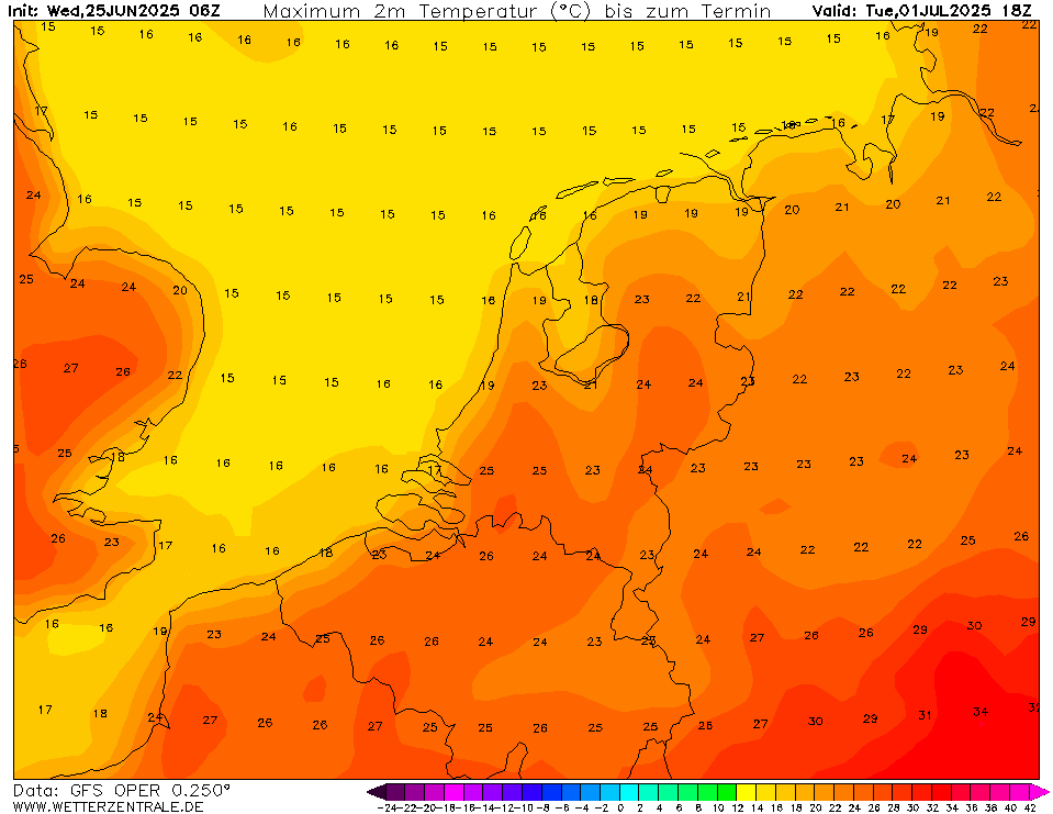 Oper GFS2506 - maandag zeer heet met Tx tot 37°C