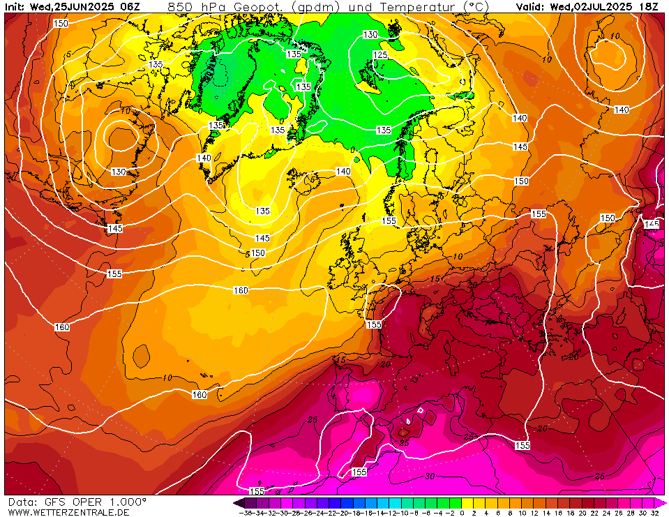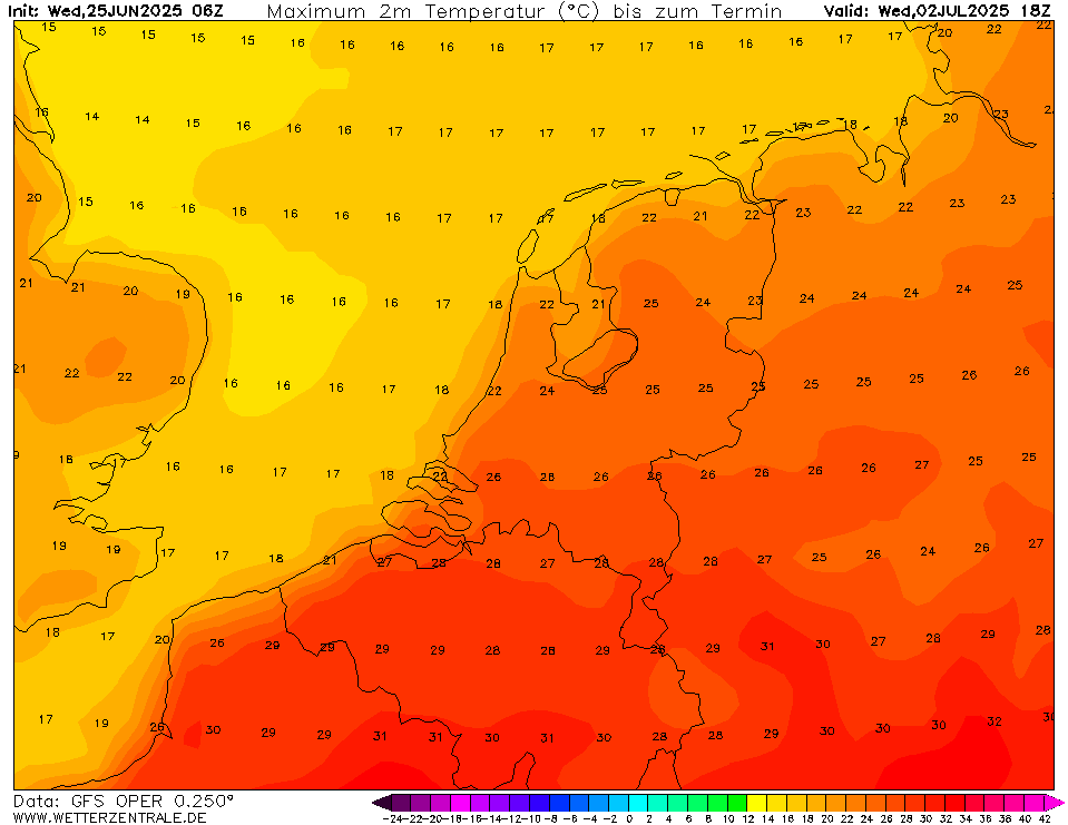 Oper GFS2506 - maandag zeer heet met Tx tot 37°C