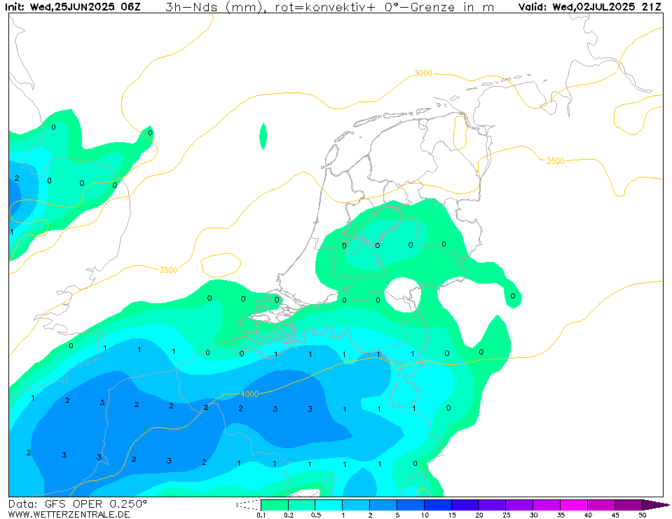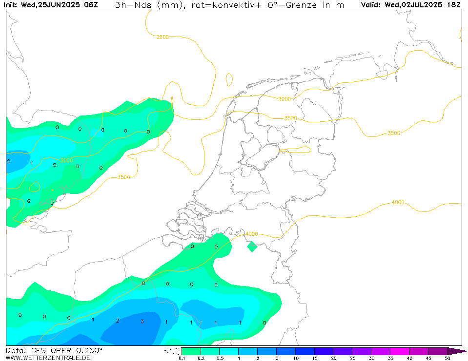 Oper GFS2506 - maandag ontstaan er buien over het westen ...