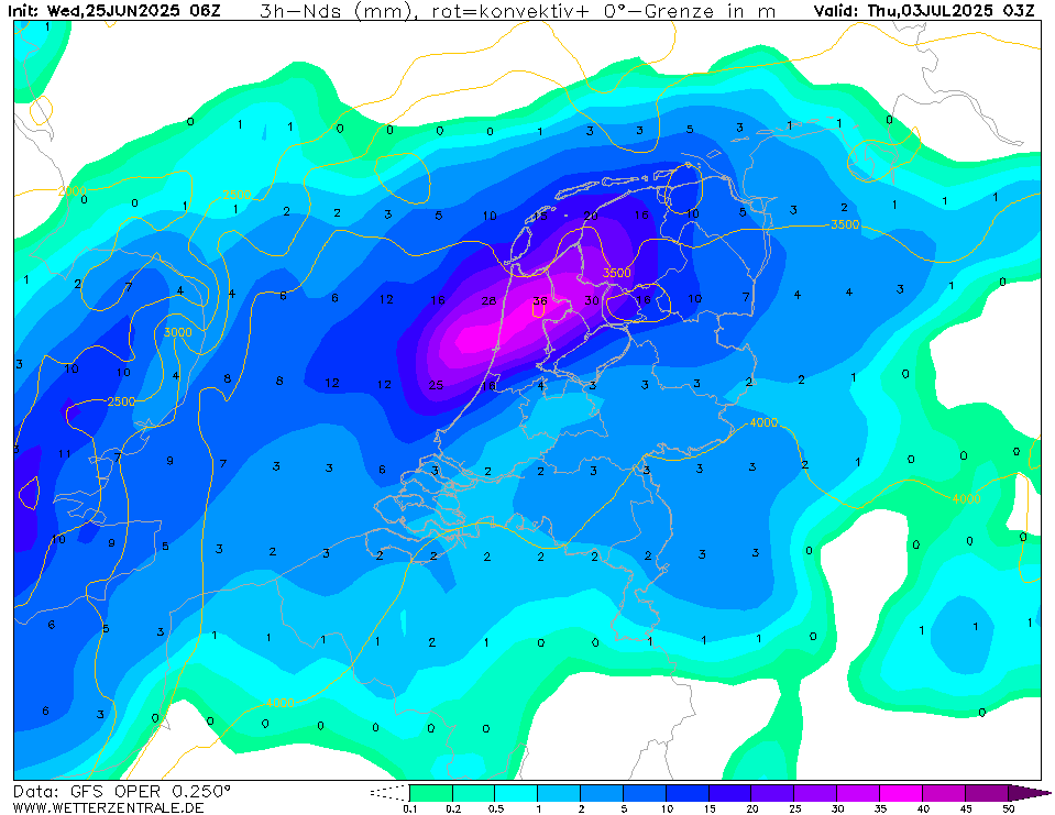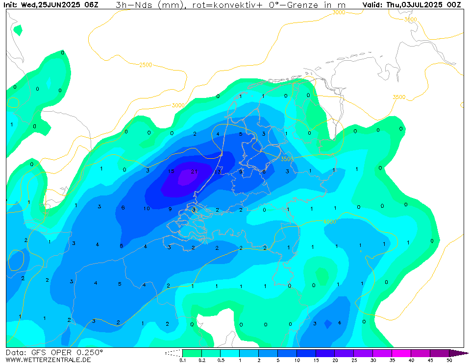 Oper GFS2506 - in avond en nacht naar donderdag (zeer) zware buien?