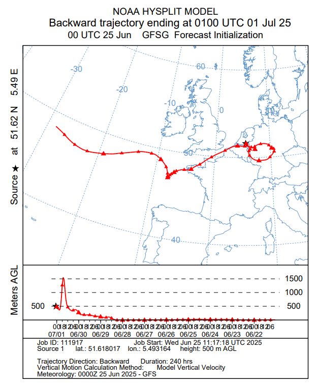 Ook op een eerder tijdstip is het brongebied van de luchtmassa de Atlantische Oceaan, de warmte lijkt mij dus primair verklaard te worden door subsidentie in combinatie met zeer krachtige anticyclonale invloeden. De warmte-advectie lijkt mij dus mogelijk verklaard te worden doordat de luchtmassa eerst over Duitsland trekt, waarbij het gebruik maakt van continentale warmte, en vervolgens de warmte gëadvecteerd wordt naar de Benelux. Maar het lijkt mij een enigszins geringe rol te spelen bij het thermische event, de voornaamste oorzaak lijkt mij de subsidentie in combinatie met een zeer krachtig hogedrukgebied zoals eerder genoemd. Het 'heat dome-effect' komt in het laatste decennium inderdaad een stuk prominenter naar voren.