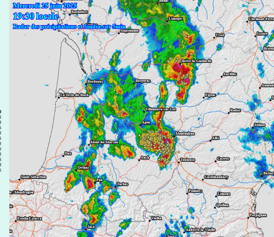 Iets zuid een hp overgaand in bow echo...erachter supercells die vermoedelijk ook clusteren en bows kunnen vormen