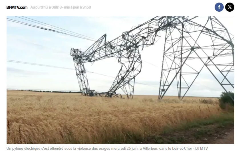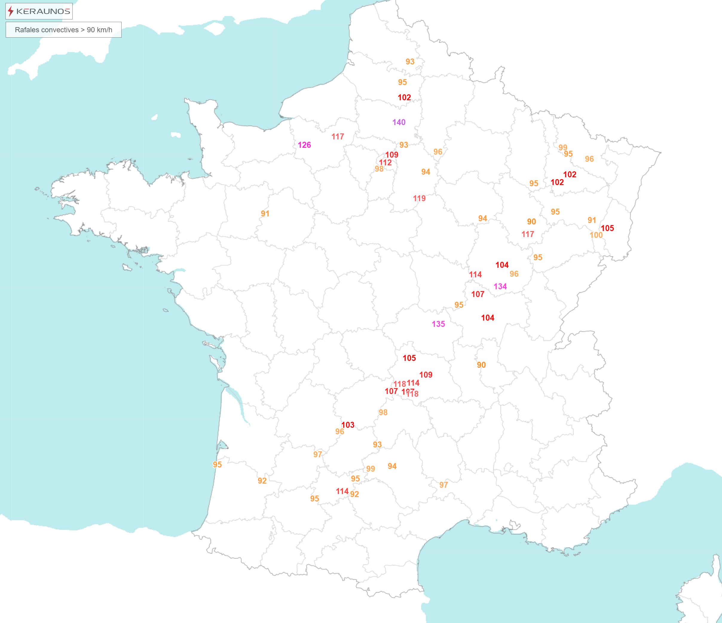 Ook bij Parijs en ten noorden van de stad kwam het tot noodweer. Een weerstation in een departement noord van de hoofdstad (Oise) noteerde een windstoot van 140km/uur. Bovenop de Eiffeltoren haalde de wind uit tot 112km/uur. Al met al voor de tweede keer op rij een indrukwekkende avond in Frankrijk. Een dag eerder was het in het zuidwesten namelijk ook al raak, met toen lokaal vlagen tussen de 130 en 140 km/uur.