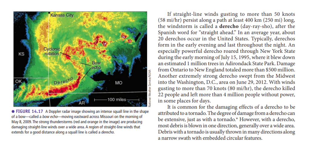 In Frankrijk legde een 'derecho' gisteravond een pad af van meer dan 700 kilometer. Op deze lijn kwamen op veel plekken windstoten voor tussen de 90 en 135 km/uur. Daarmee voldoet dit buiensysteem aan de definitie van derecho: een rechte lijn van minimaal 400 kilometer met windstoten van minimaal 50 knopen (zie uitleg in onderstaande afbeelding).
