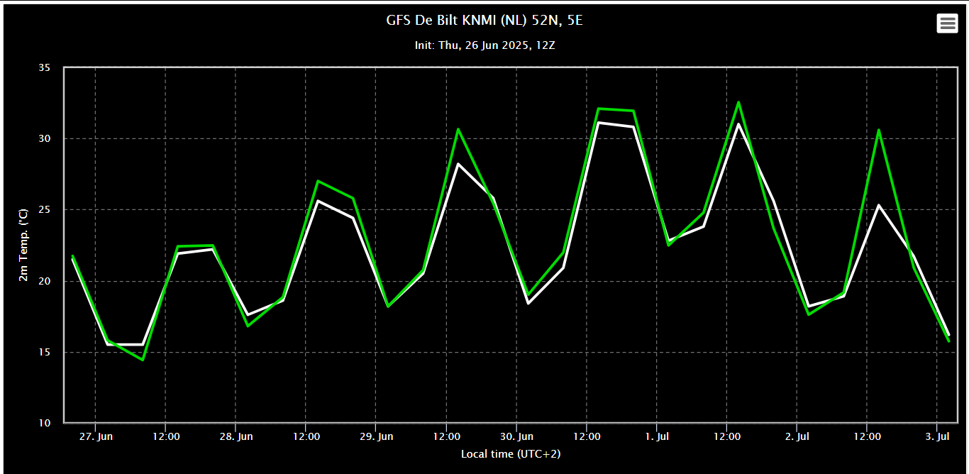 Op 1 juli wordt om 14:00 uur een T verwacht van 32,5 °C